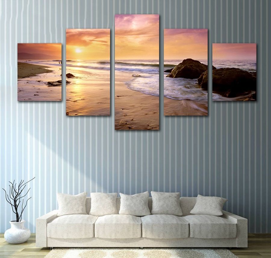Canvas Wall Art Painting No Frame Home Decor Living Room 5 Pieces Hd Printed River At Sunshine Pictures Natural Landscape Poster