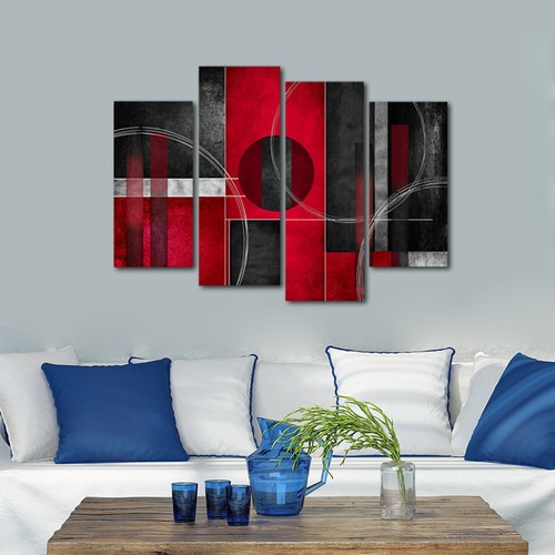 Details About Framed Abstract Canvas Print Painting Home Decor Red Black Wall Art Picture 4pcs