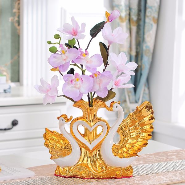Swan Figurine Statue Home Decor Vase Decoration Accessories For Flowers Decorative Vases Ceramic Modern Tall Gold Vases Tall Gold Vases For Wedding