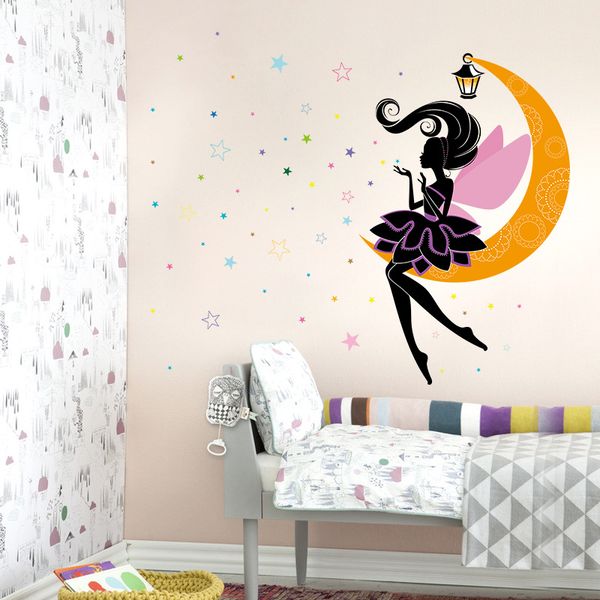 3d Flower Fairy Moon Stars Decorative Wall Sticker For Kids Room Wall Decal Home Decor Window Elf Girl Pvc Diy Art Mural Poster Home Sticker Home Wall