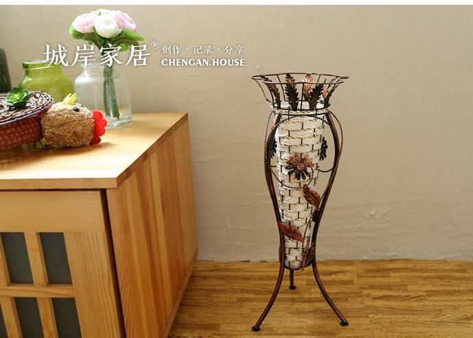 Vintage Hand Woven Iron Floor Vase American Country Style Home Decor Vases Simulation Flowers Vases Flower Arrangement Necessary